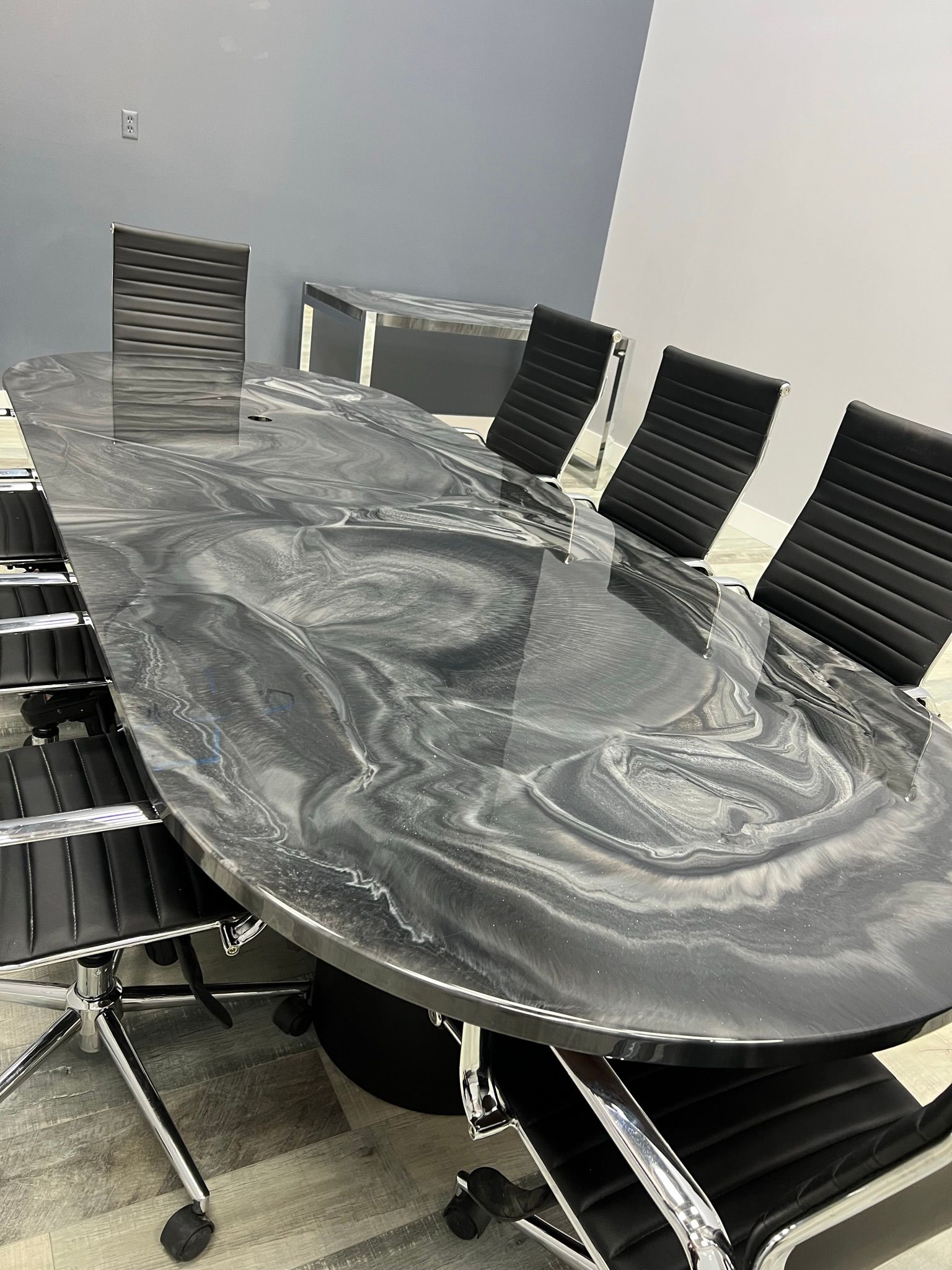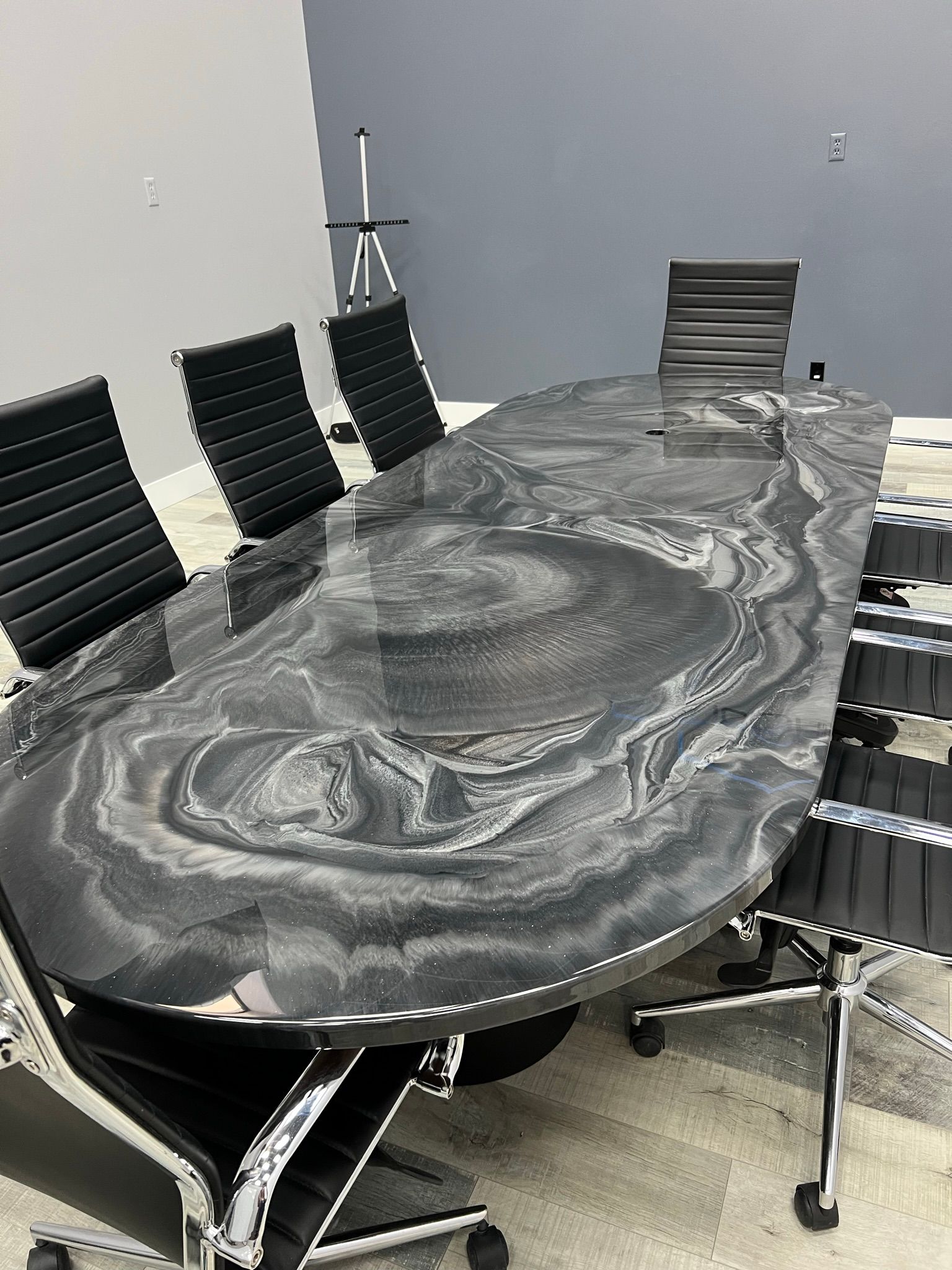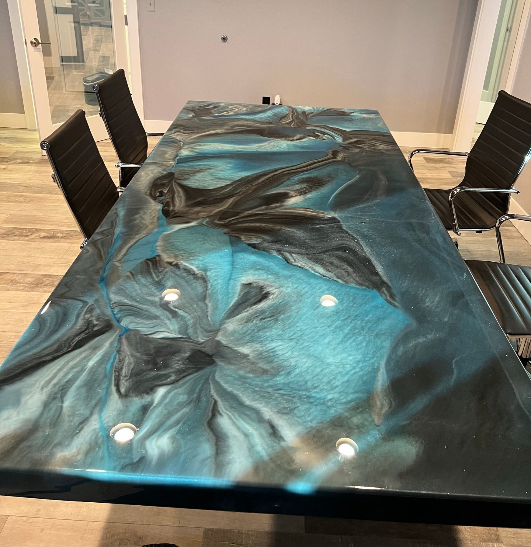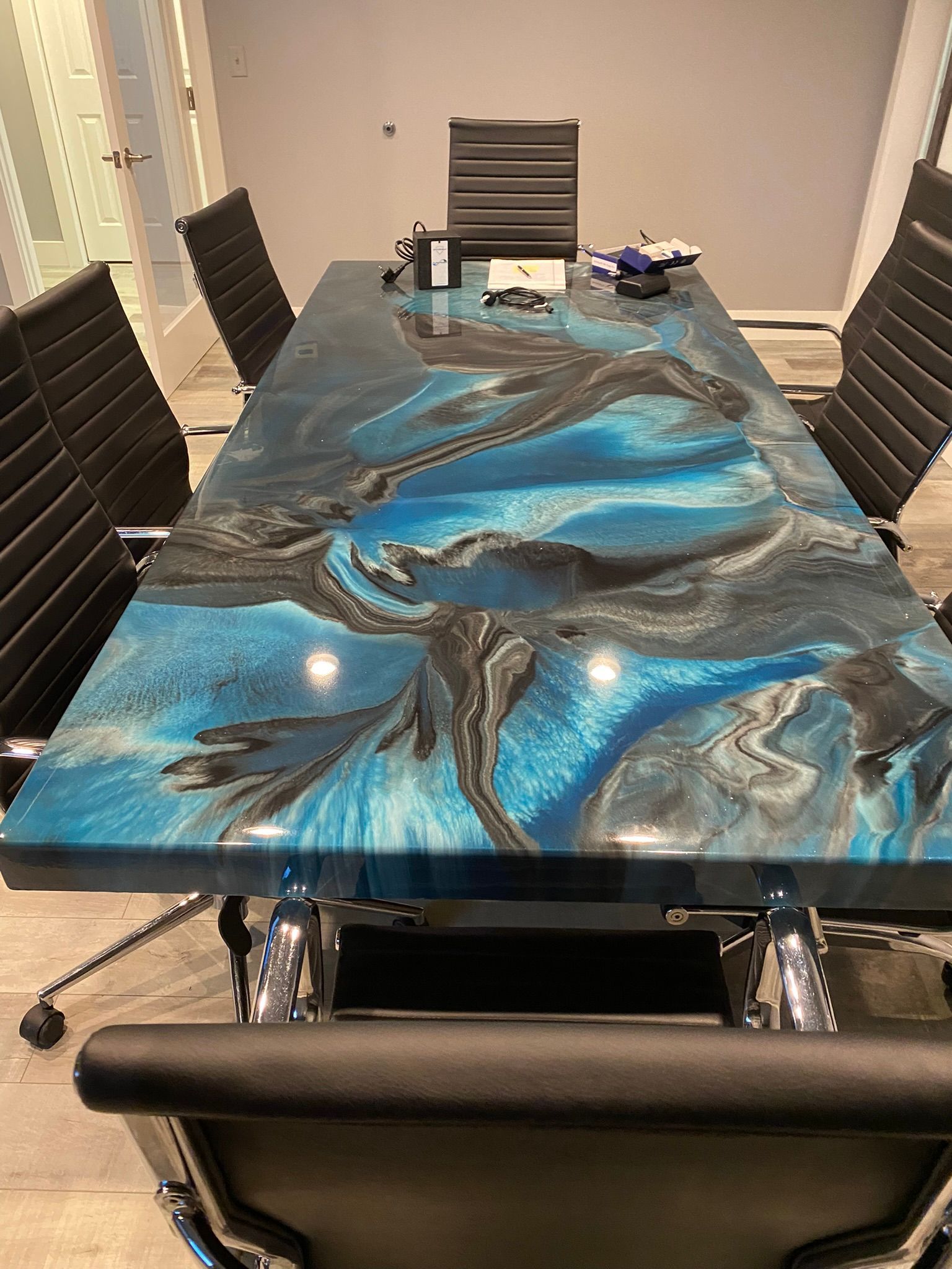 Epoxy countertops provide a glossy look that can make inexpensive materials like laminate or worn-out wood seem more luxurious. Consumers commonly place an epoxy countertop over laminate, wood, concrete, or ceramic that has become worn out. This creates a shiny, glossy finish and protects the surface underneath. You can completely customize the color and style of these types of surfaces, and they can be used as countertops, bathroom vanity tops, table tops and more!